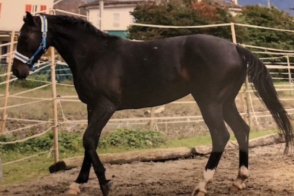Cette belle et grande jument n est pas encore débourrée sous la selle(faute de temps et cavalière accidentée…) C est une gentille jument qui est calme et sereine en groupe ,mais stressée et délicate quand se retrouve seule.